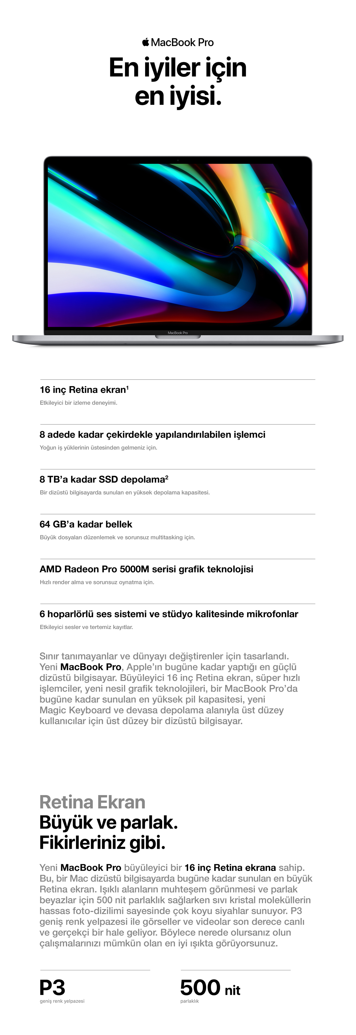 Apple MacBook Pro Intel Core i9 9880H 16GB 1TB SSD Radeon Pro 5500M macOS 16" Taşınabilir Bilgisayar Space Grey MVVK2TU/A